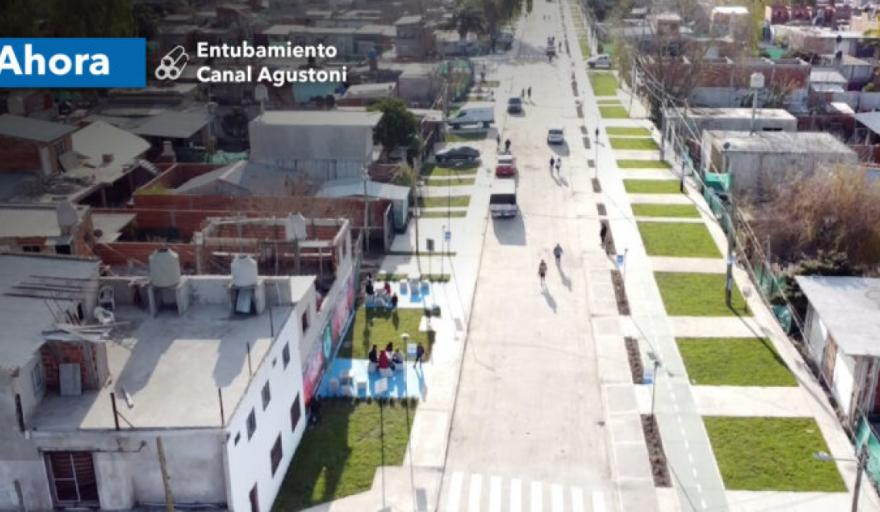 La obra consistió en el entubamiento del canal Agustoni a lo largo de más de 3 kilómetros, desde la ex Ruta 8 hasta la desembocadura del arroyo. Ahora el canal pasa por un conducto de hormigón de doble celda debajo de la calle Santa Águeda, que además fue pavimentada. Y al asfalto de la calle se suman cordón cuneta, sumideros y veredas. Cabe señalar que la obra no afecta la desembocadura natural del arroyo en el Río Luján.